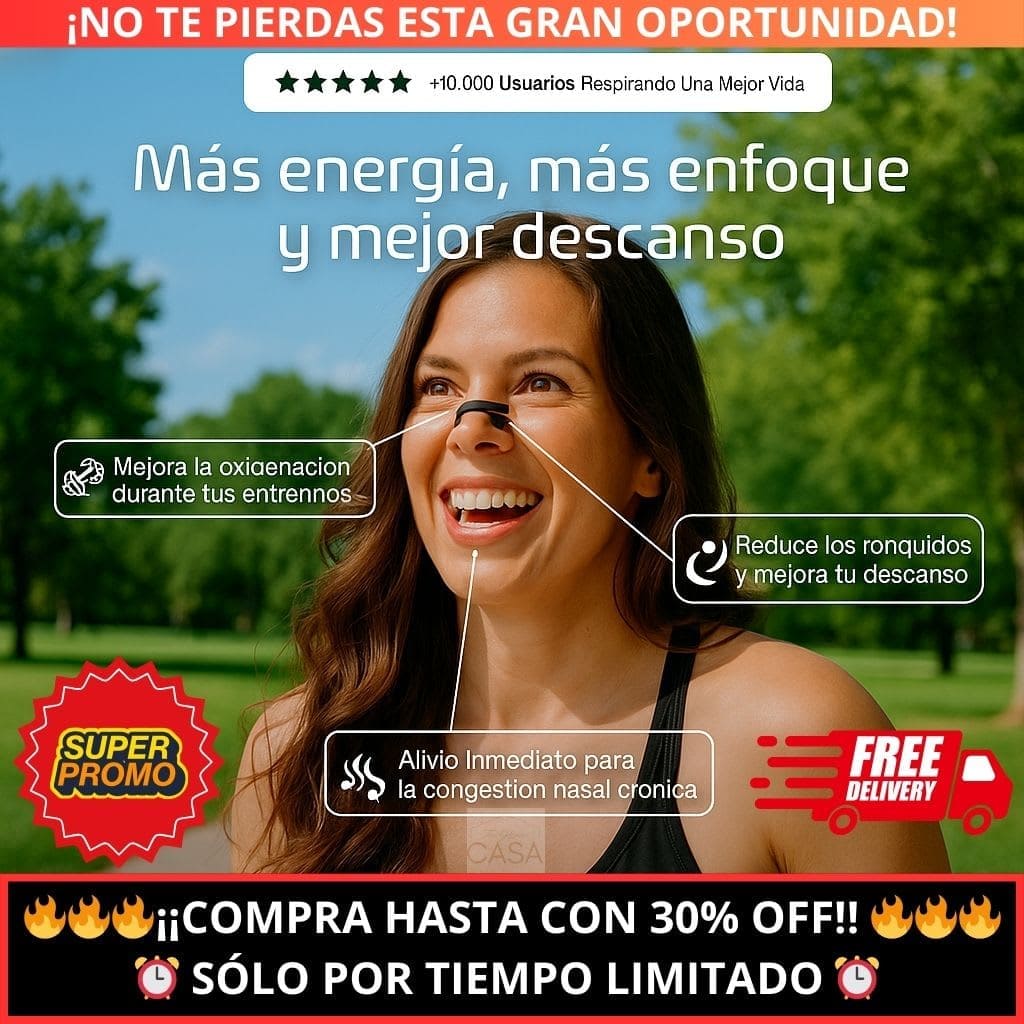 Estas bandas nasales reducen ronquidos y congestión para que duermas mejor y despiertes con energía. El 80% de las personas tiene el tabique desviado sin saberlo.